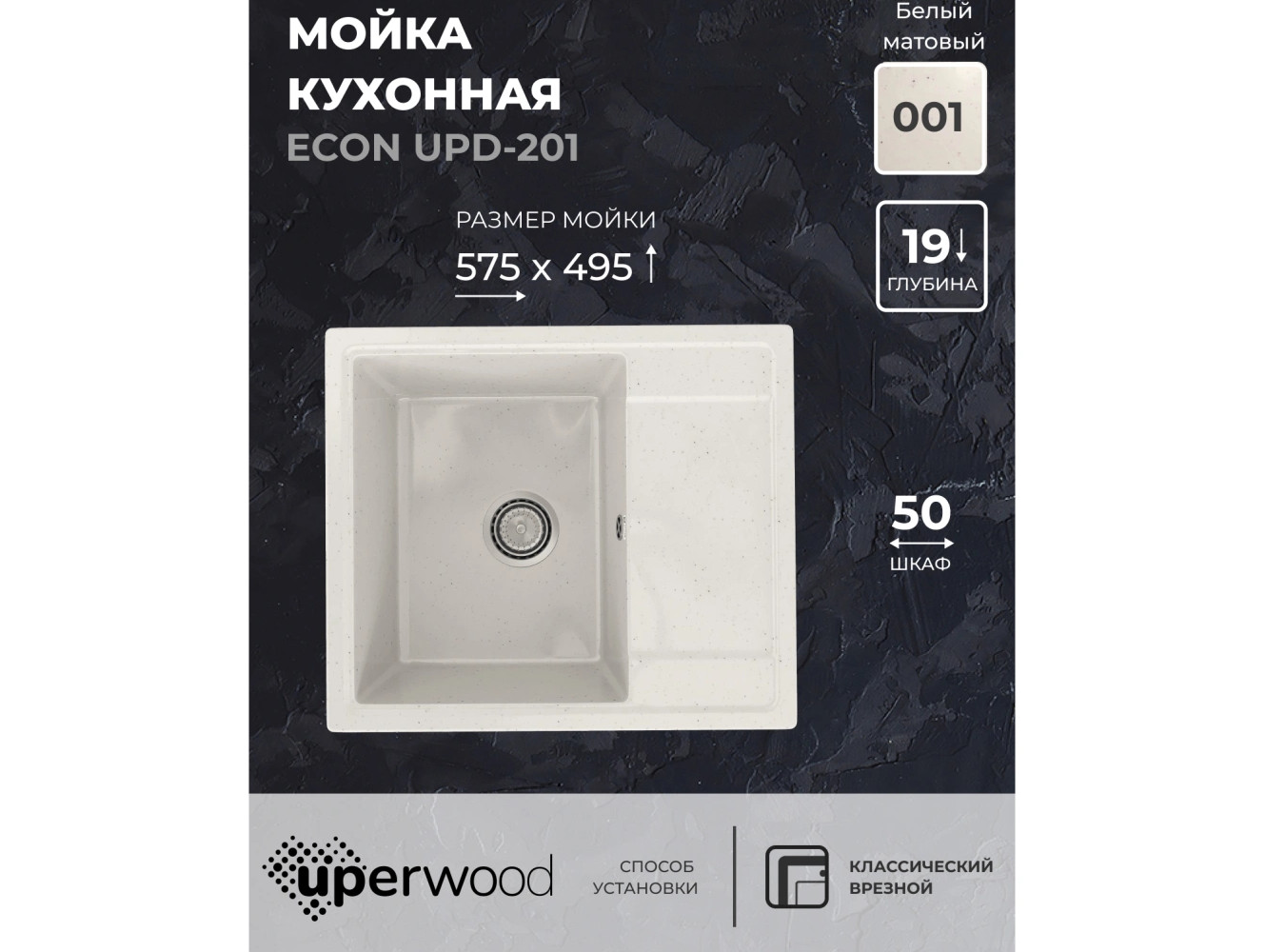 Кухонная мойка Uperwood ECON UPD-201-001 белая матовая