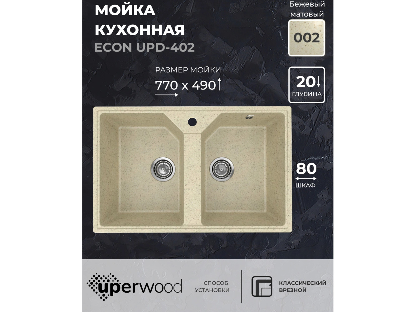 - Кухонная мойка Uperwood ECON UPD-402-002 бежевая матовая