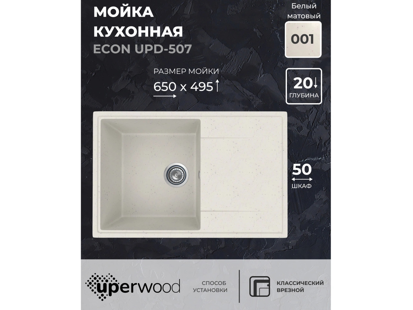 Кухонная мойка Uperwood ECON UPD-507-001 белая матовая