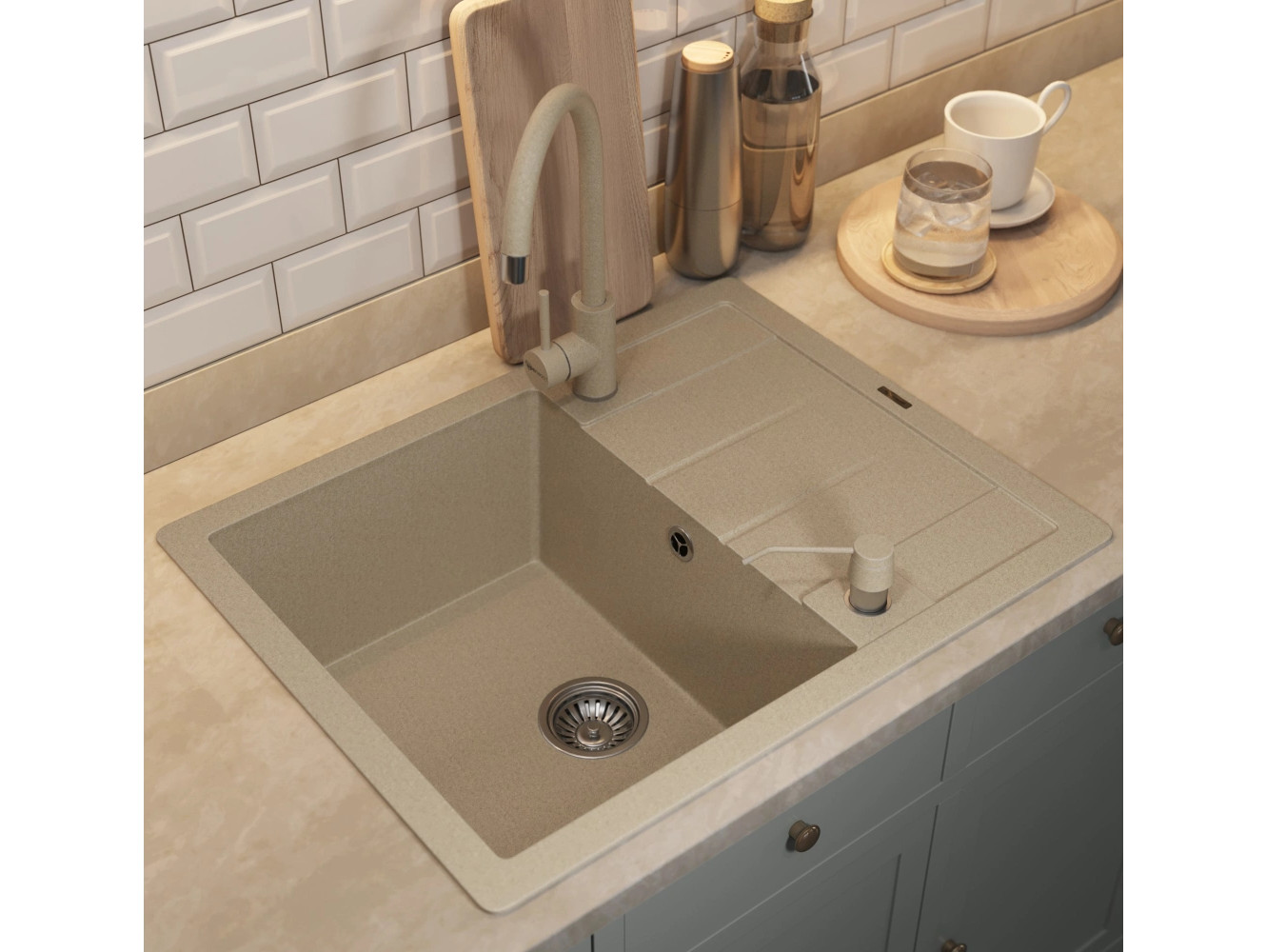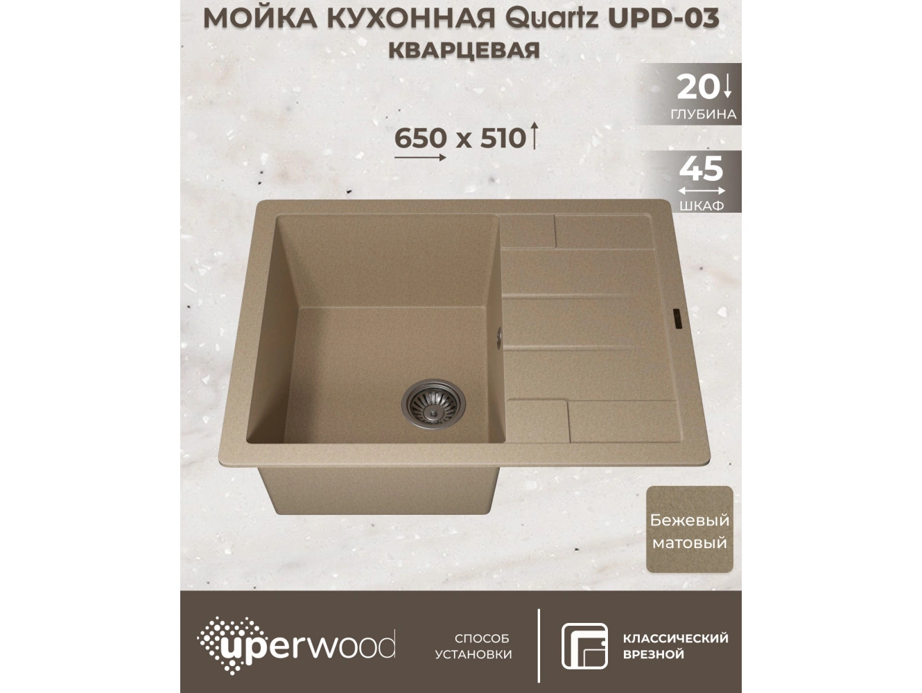 - Кухонная мойка Uperwood Quartz UPD-03-02 бежевая матовая