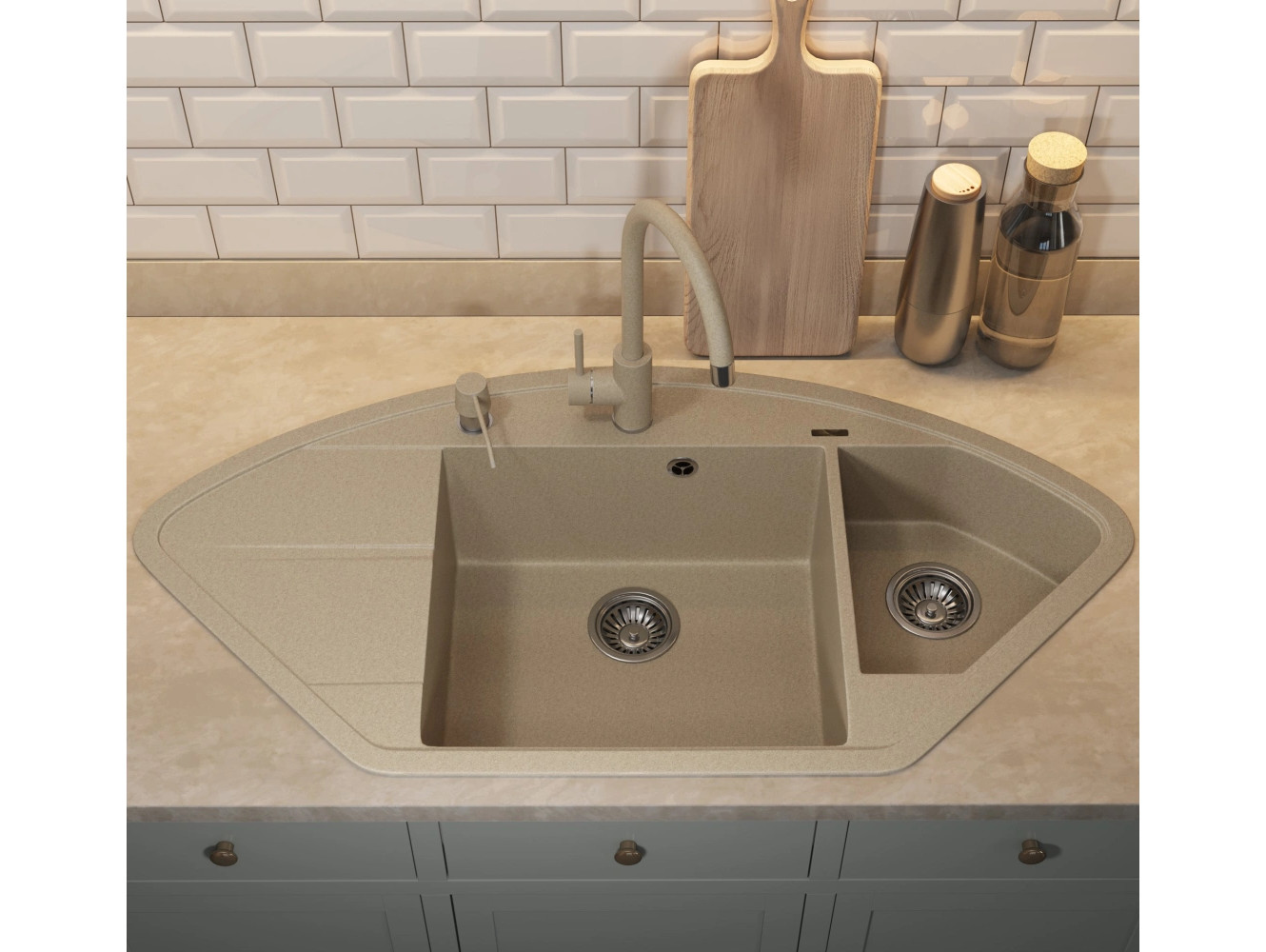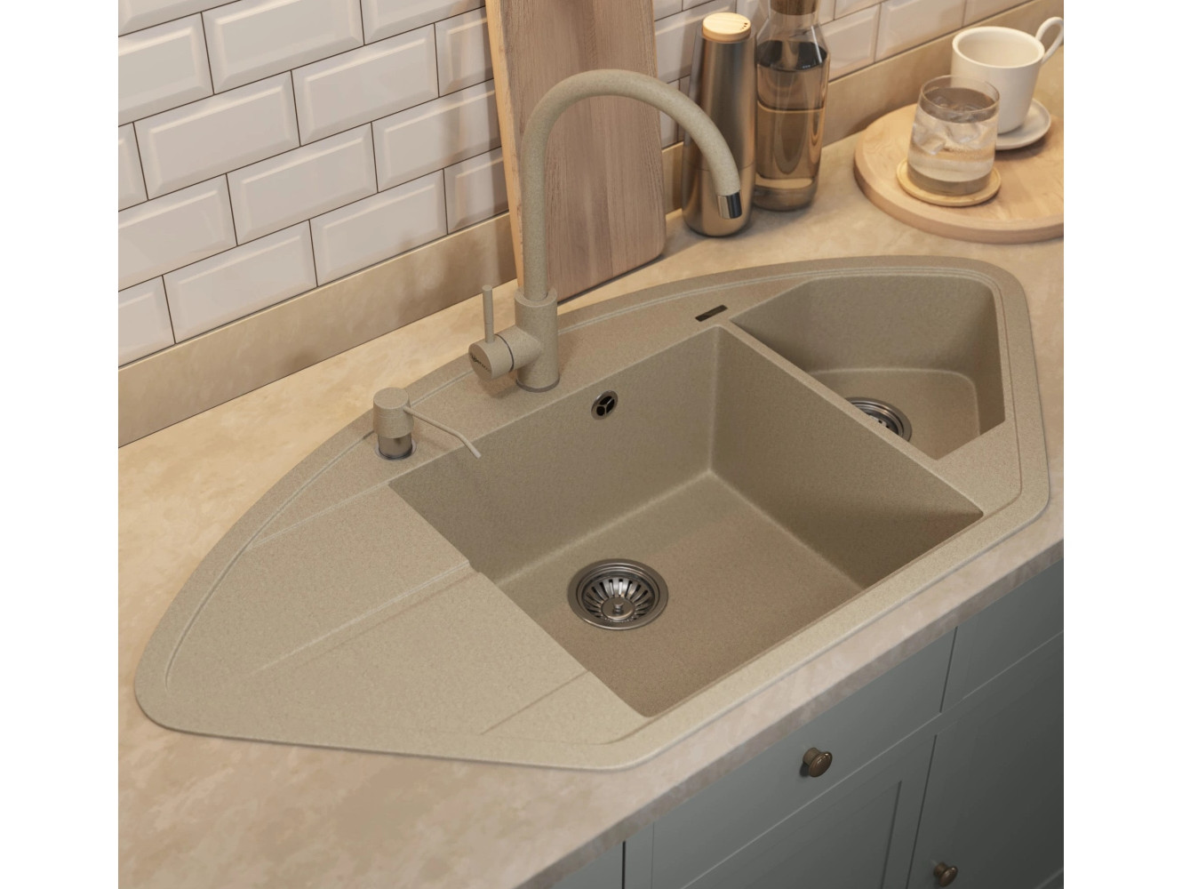 - Кухонная мойка Uperwood Quartz UPD-06-02 бежевая матовая