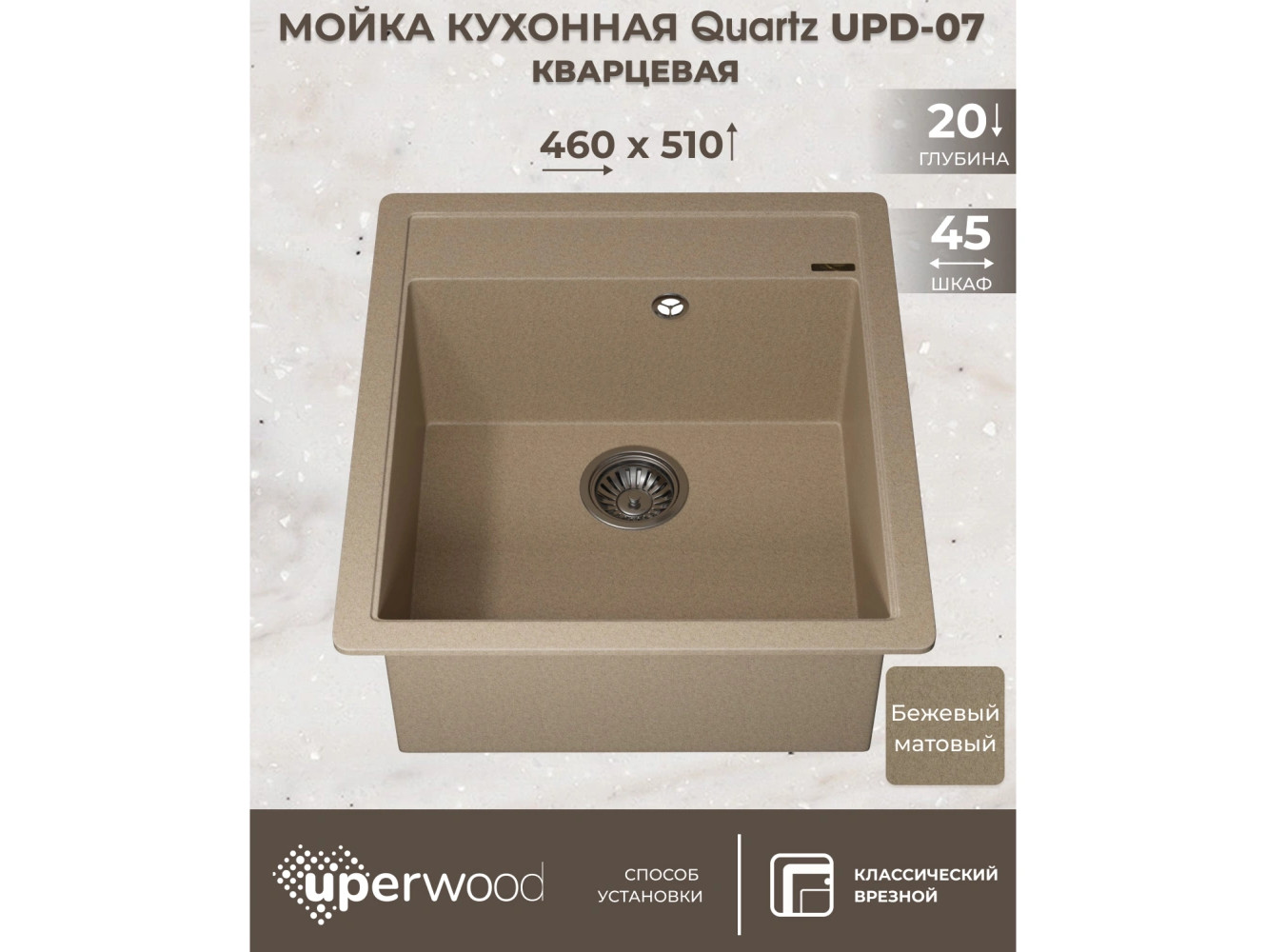 - Кухонная мойка Uperwood Quartz UPD-07-02 бежевая матовая