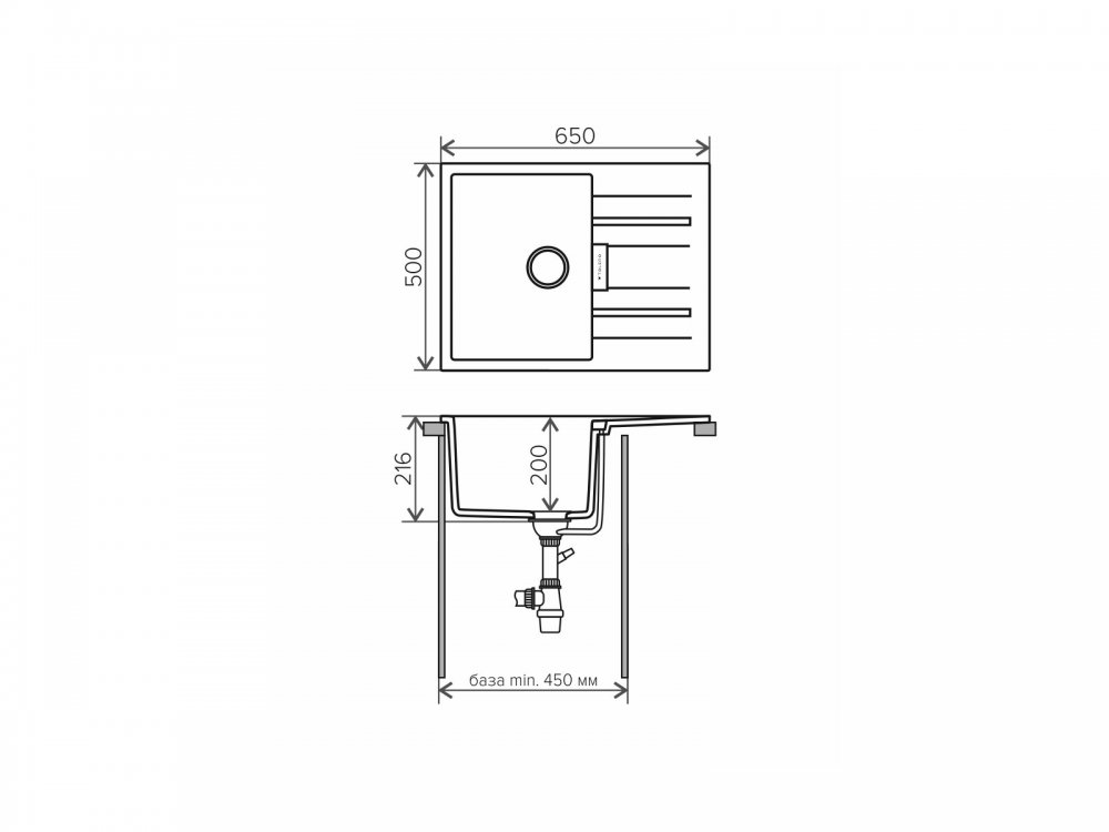 Минимальный размер тумбы под мойку, мм: 450