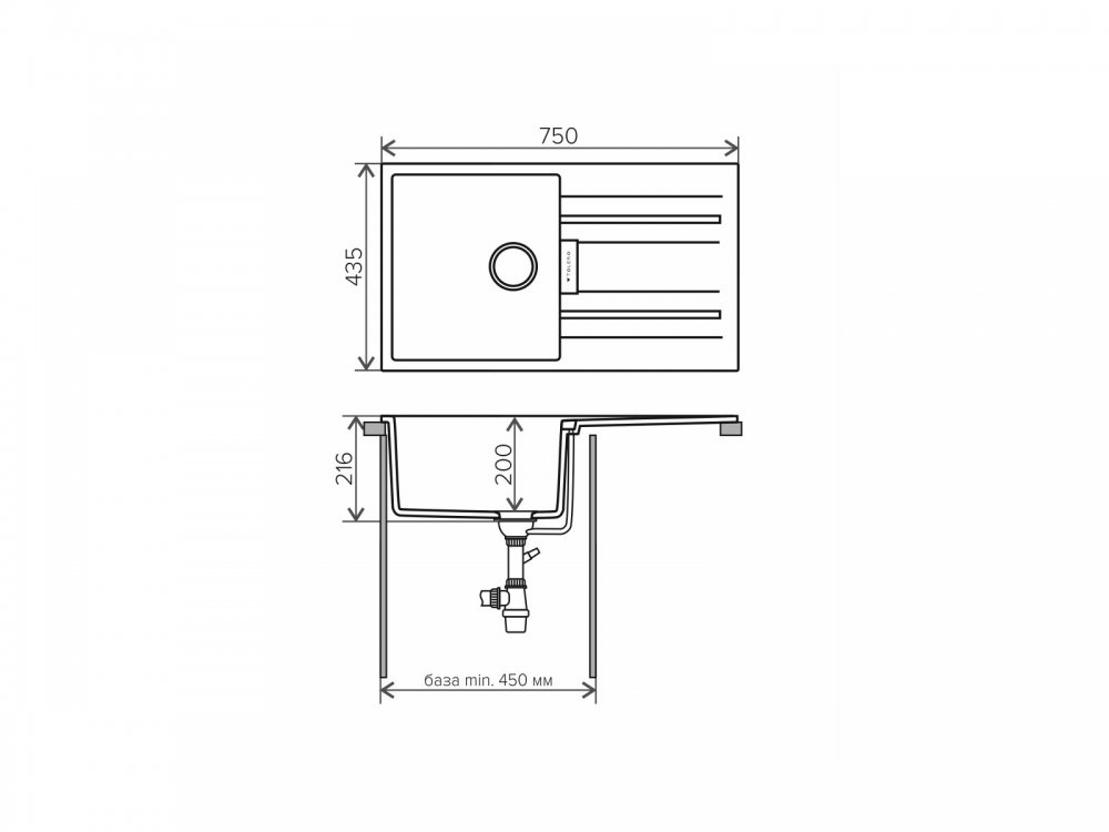 Длина мойки, мм: 750