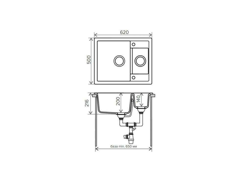 Минимальный размер тумбы под мойку, мм: 650