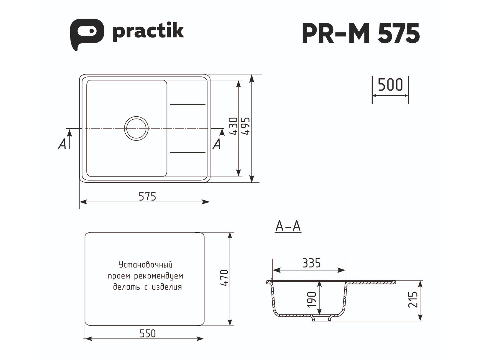 - Мойка Practik PR-M 575-003 светло-серый