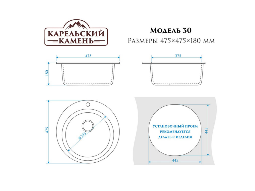 - Мойка врезная Карельский камень модель 30 Темно-серый