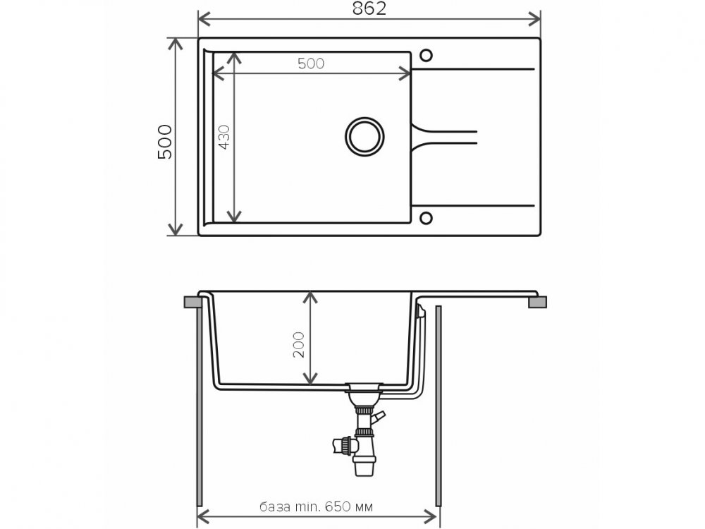 Длина мойки, мм: 862