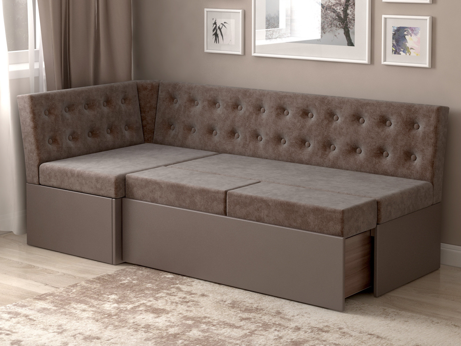 - Скамья угловая со спальным местом Олимп Микровелюр коричневый
