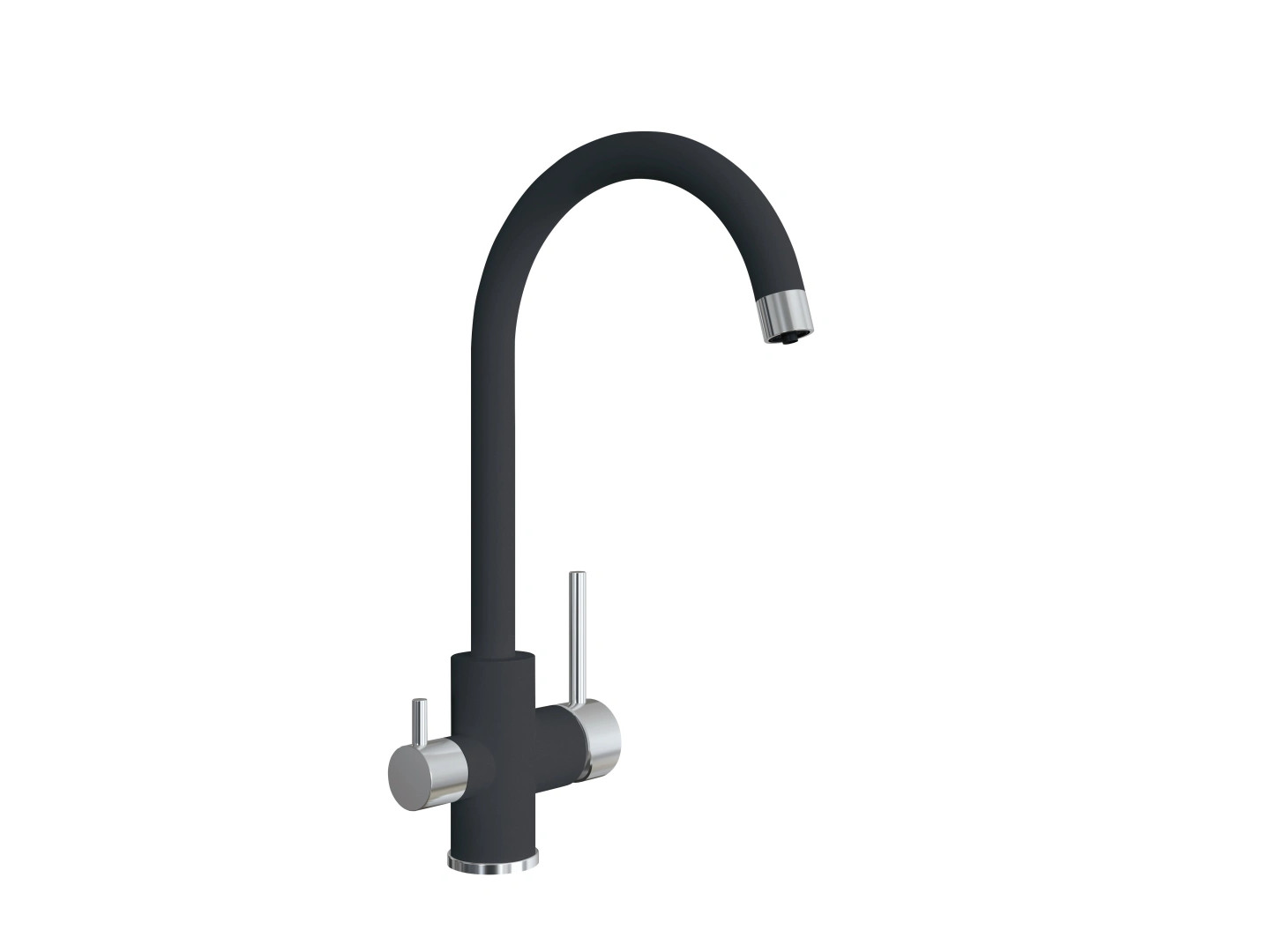 Смеситель оснащен встроенным фильтром для питьевой воды и дополнительной рукояткой с рычажным управлением. Высокий поворотный излив. Современный дизайн изделия. Гибкая подводка 45 см в комплекте. Усиленная гайка крепления смесителя.