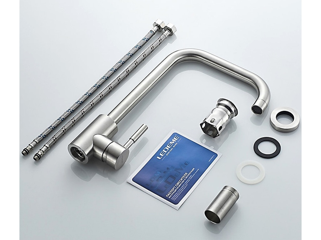 - При производстве смесителя используются только высококачественные материалы, благодаря которым он обладает большой износостойкостью и имеет антикоррозийные свойства. Монтаж на гайке.