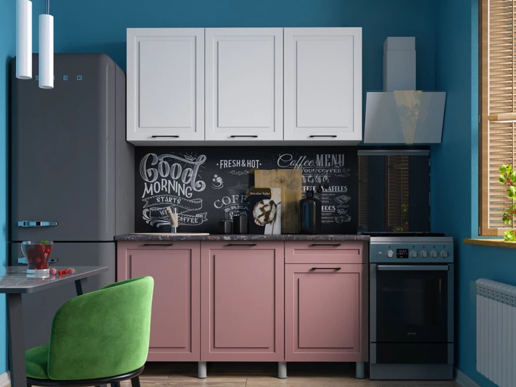 Кухня Аликанте 1500 МДФ Белый снег/пудра без столешницы