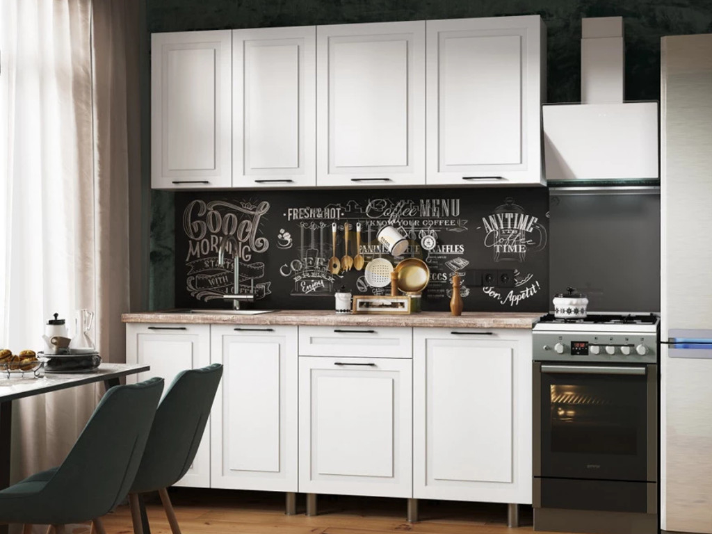 - Кухня Аликанте 1800 МДФ Белый снег без столешницы