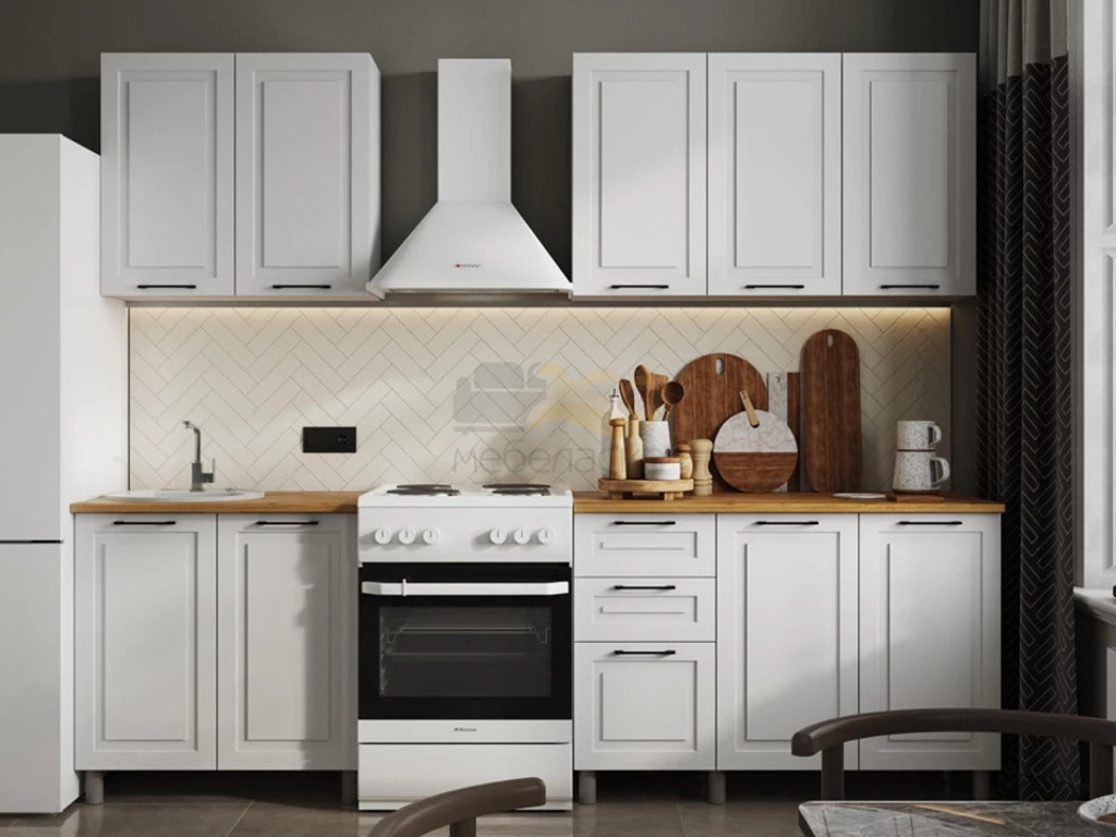 - Кухня Аликанте 2000 без стекла МДФ Белый снег без столешницы