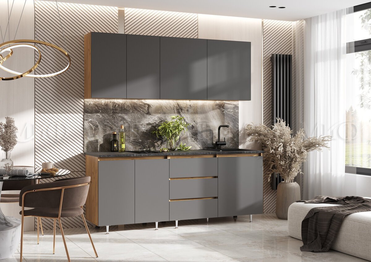 Кухня Челси 2000 мм Компановка №2 Графит, Дуб Крафт (Кастилло)