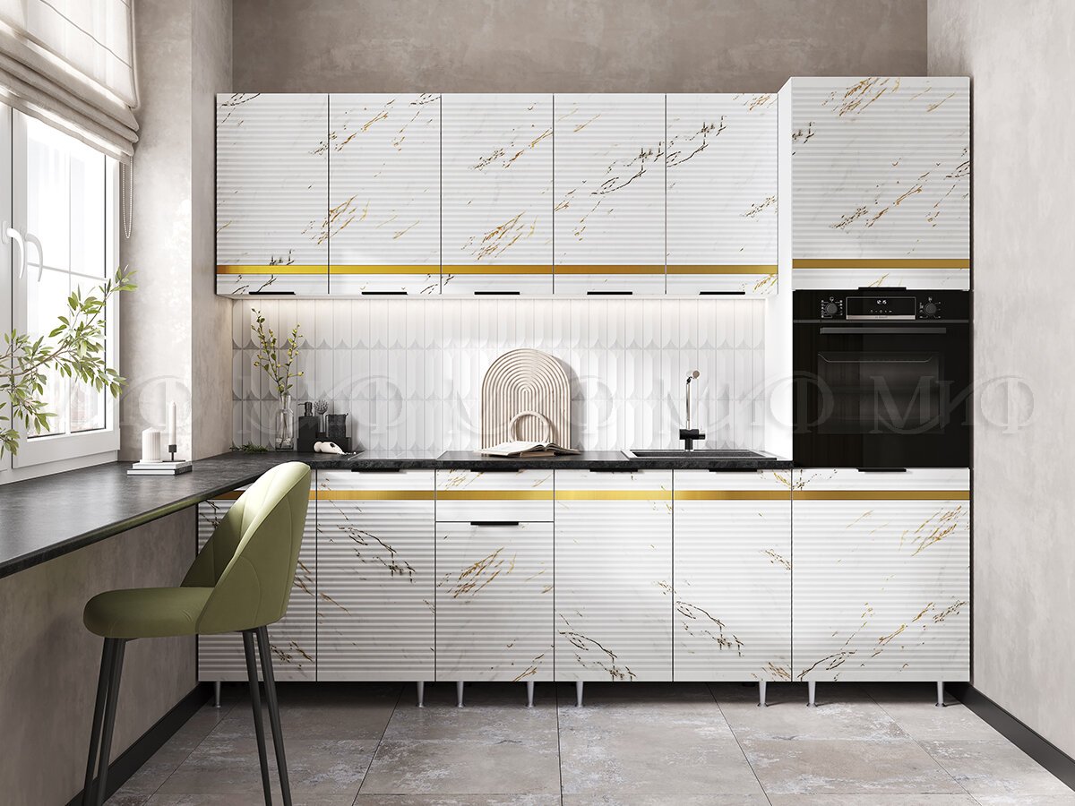 Кухня Милена 2,6 м Мрамор золото