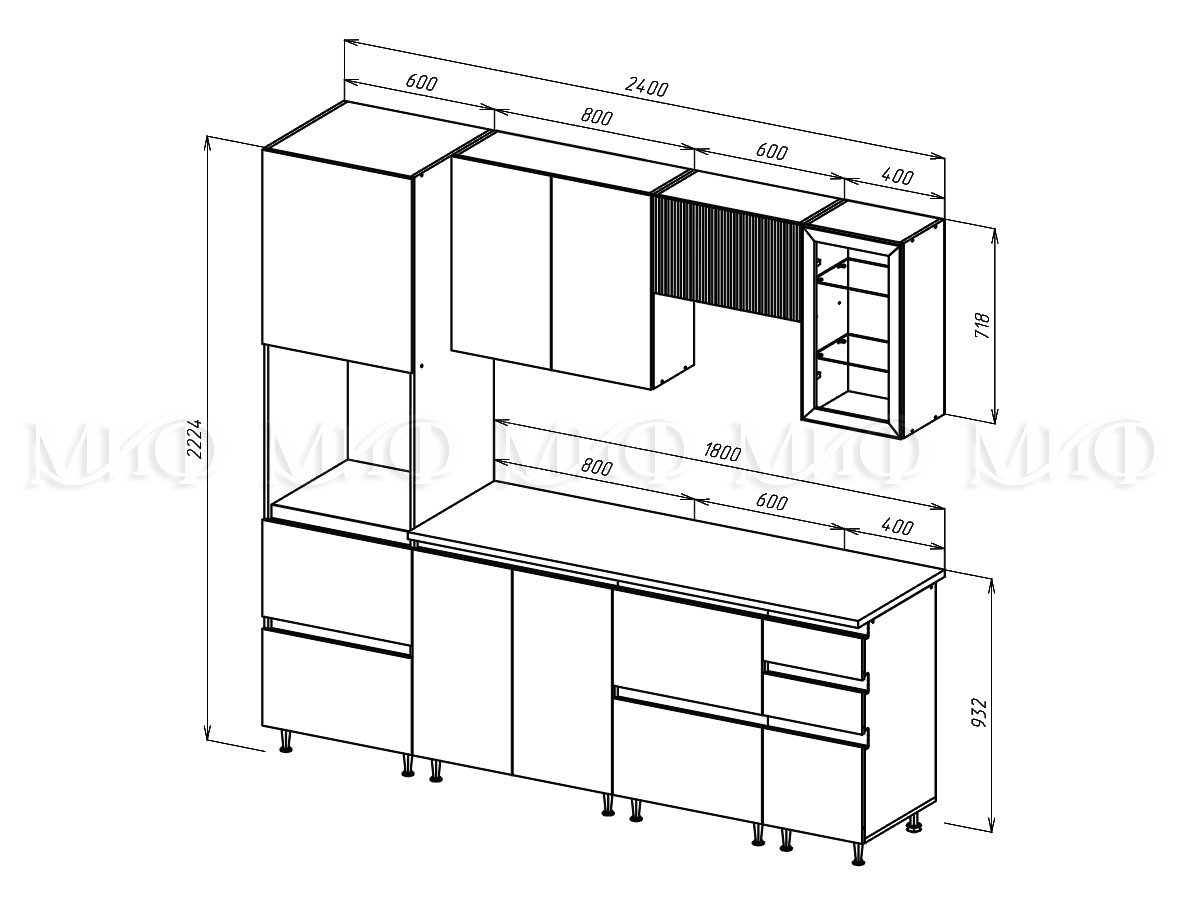 - Кухня Техно-6 2400 мм Графит/Белый снег софт