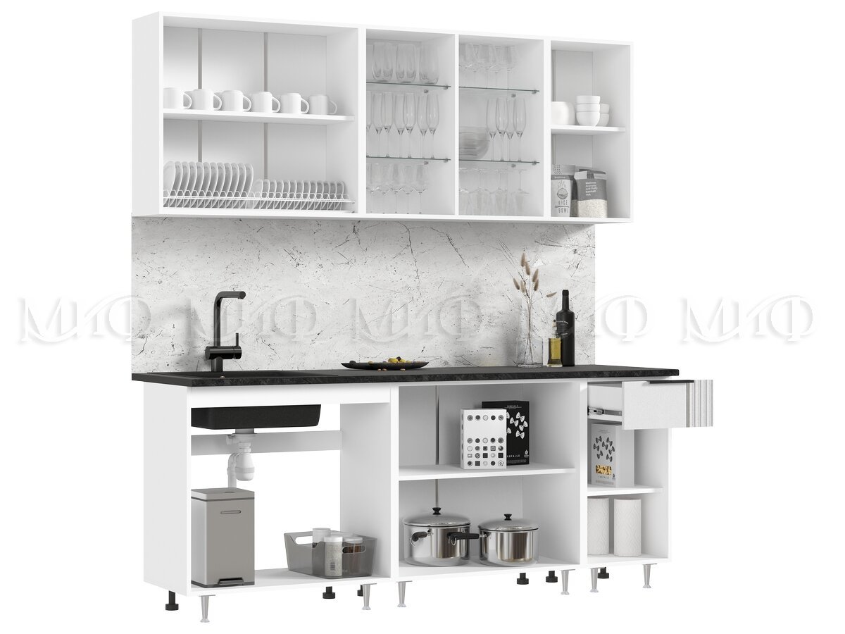 - Кухня Виктория 2000 мм Пластер Скай/Белый (Кастилло темный)