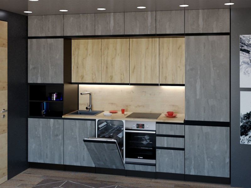 Мойка, смеситель, стеновая панель и посудосушитель в комплект гарнитура не входят.