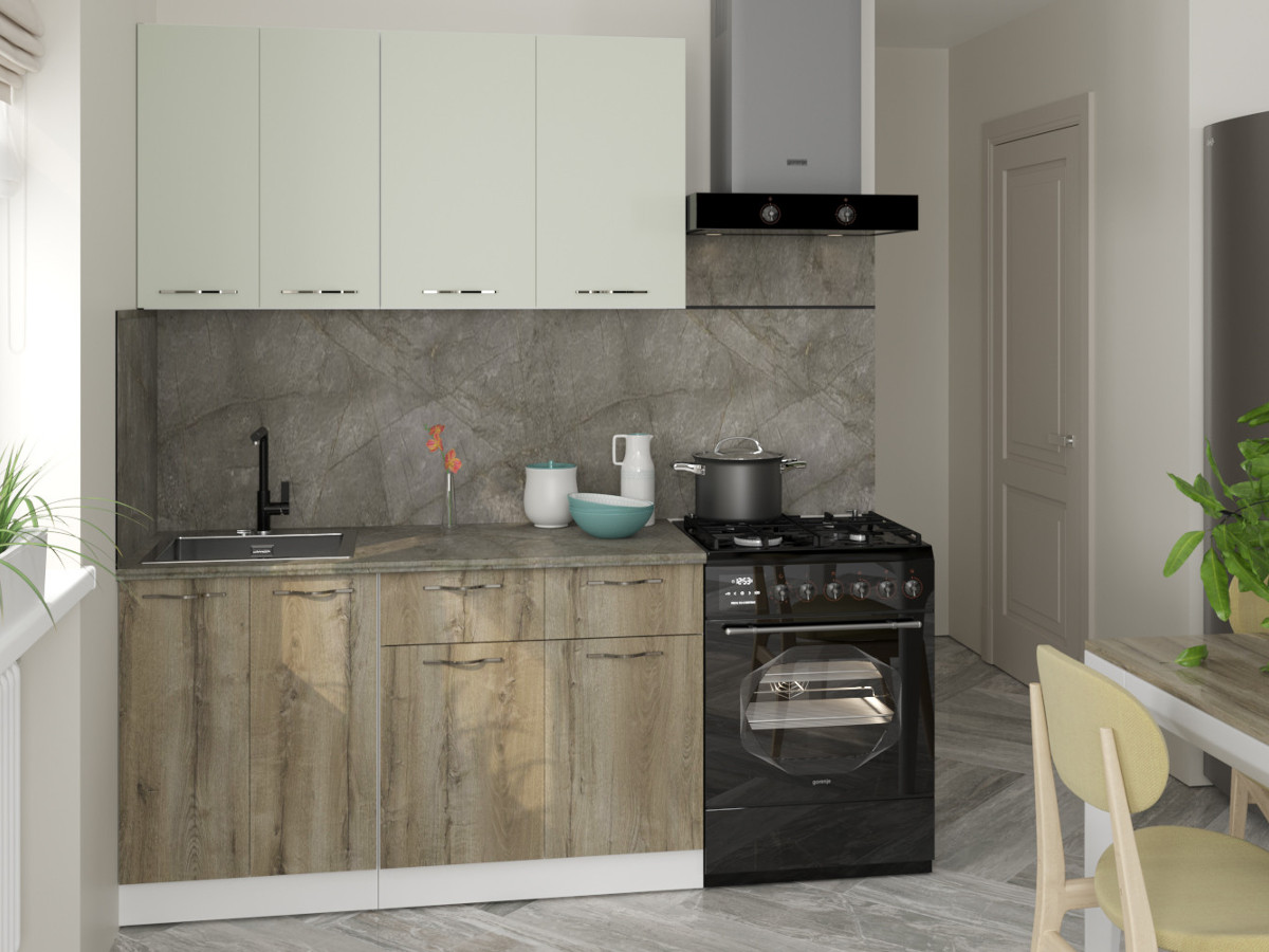 Мойка, смеситель, стеновая панель и посудосушитель в комплект гарнитура не входят.