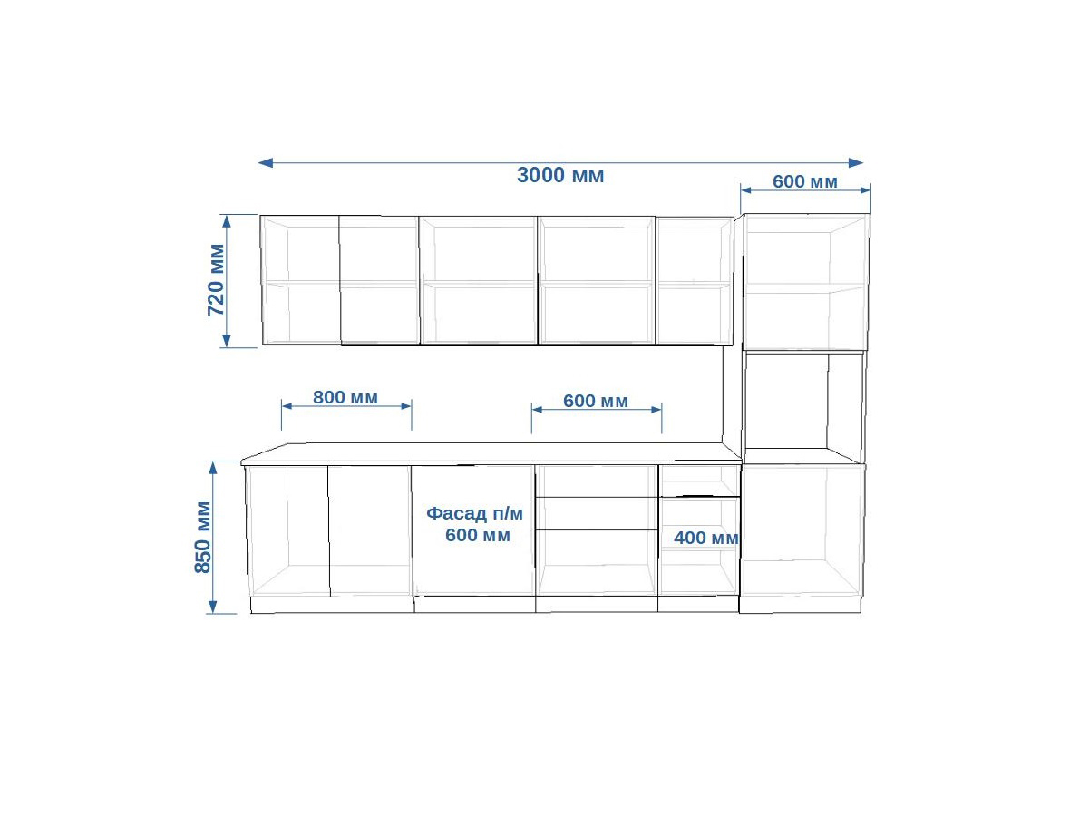 - высота верхних шкафов 720 мм