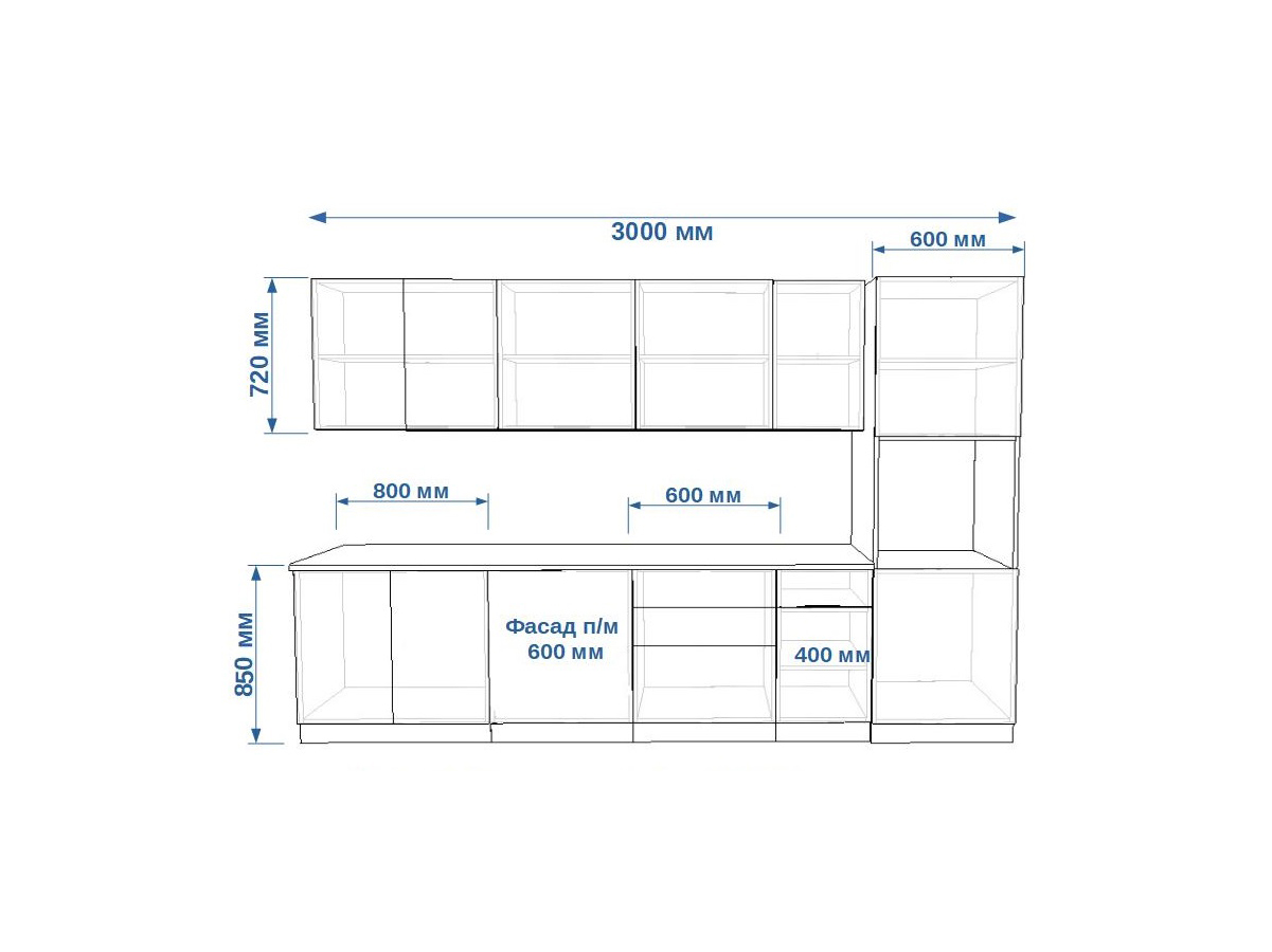 - высота верхних шкафов 720 мм