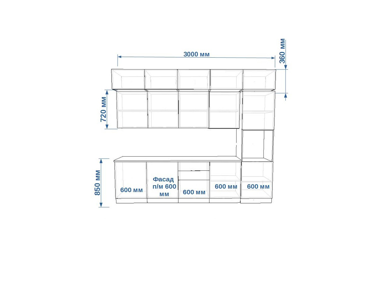 Кухонная мойка, стеновая панель, посудосушитель, планки для столешницы в комплект не входят.