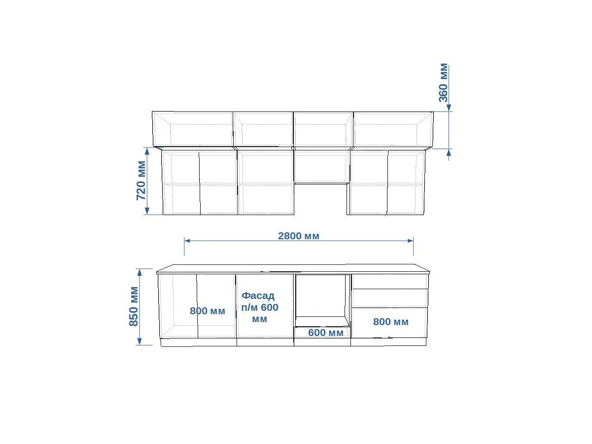 - высота верхних шкафов 720 мм