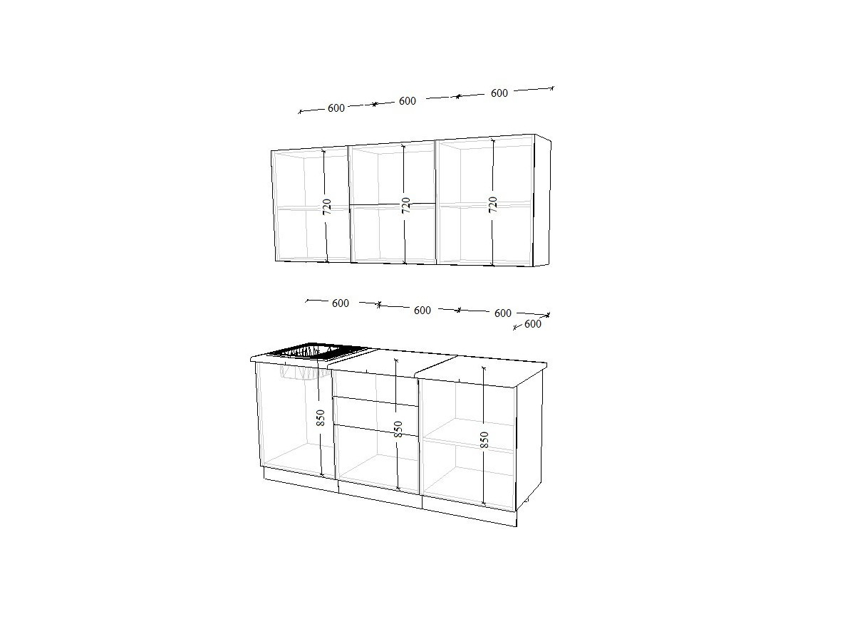 Кухонная мойка, стеновая панель, посудосушитель, планки для столешницы в комплект не входят.
