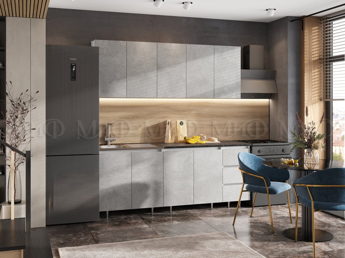 Кухонный гарнитур Челси 2000 мм Бетон светлый