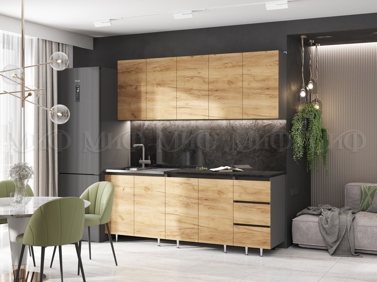 - Кухонный гарнитур Челси 2000 мм Дуб Крафт/Графит