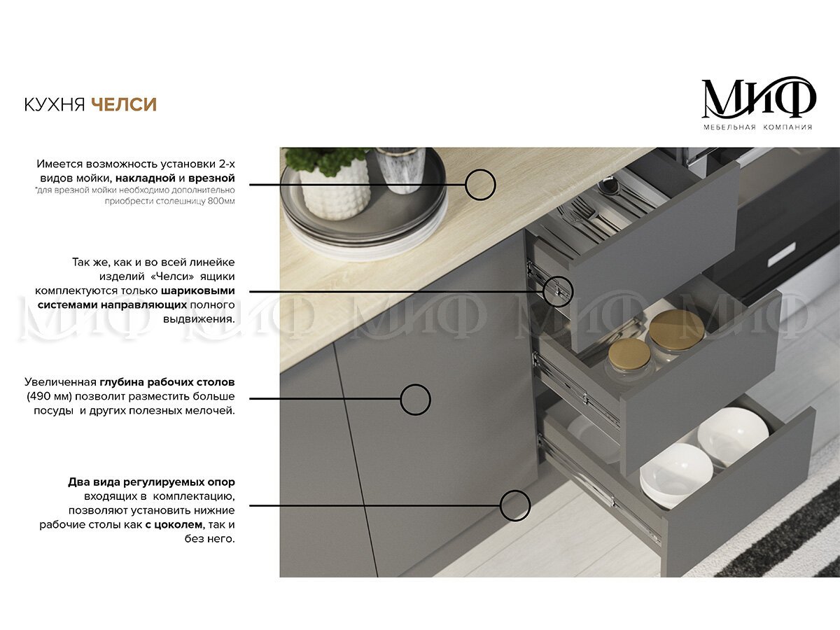 - Кухонный гарнитур Челси 2000 мм Графит