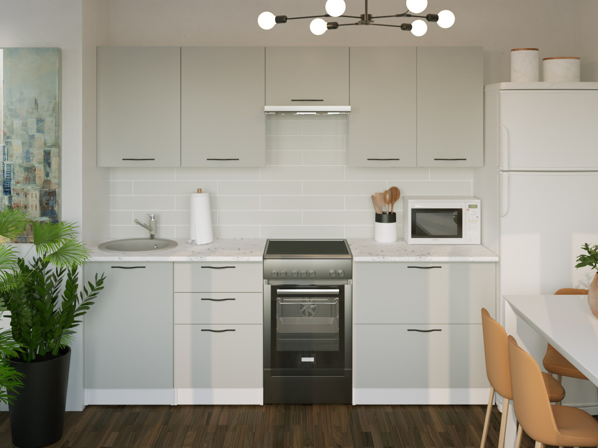 Мойка, смеситель, стеновая панель и посудосушитель в комплект гарнитура не входят.