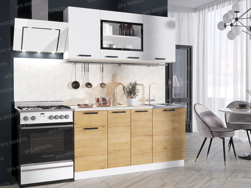 Кухонный гарнитур Хозяюшка ЛДСП 1500 белый гладкий/дуб вотан