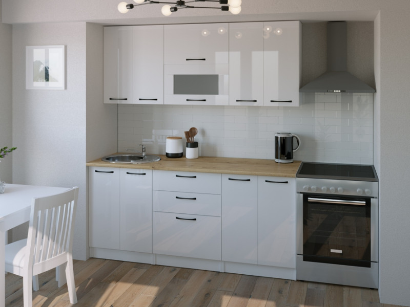 Мойки, смесители и посудосушители в комплекты гарнитуров не входят.