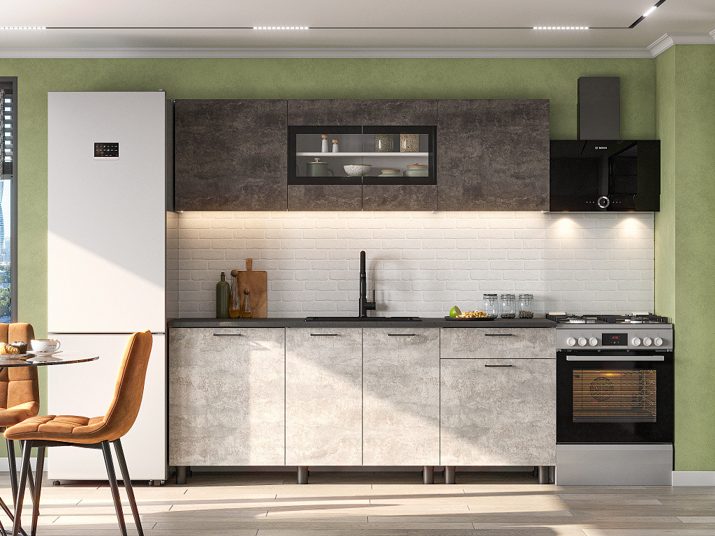 Кухонный гарнитур КГ 9 Цемент тёмный/Цемент светлый