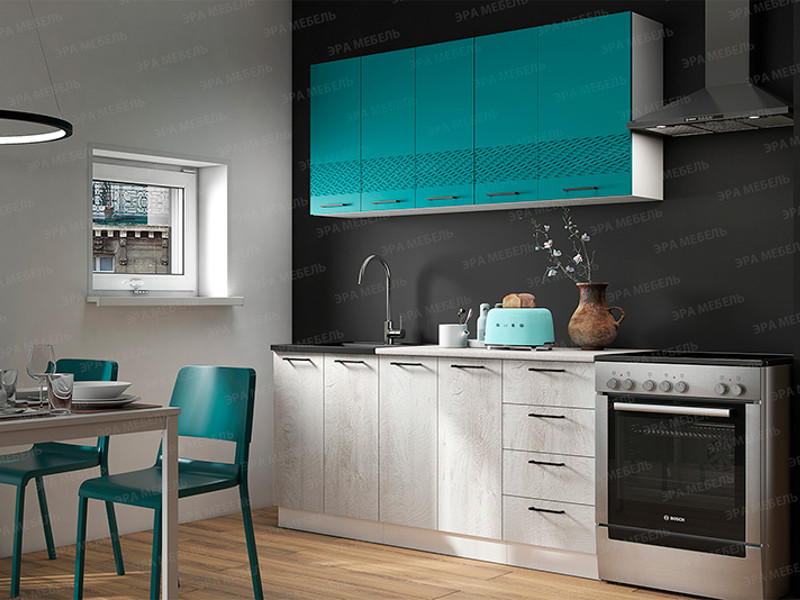 - Кухонный гарнитур Лагуна МДФ 1600 морская волна софт/дуб седой