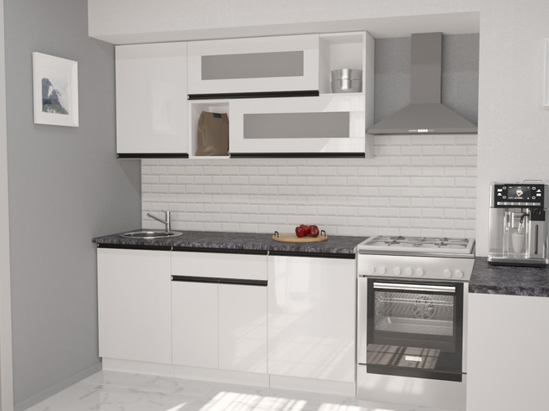 Мойки, смесители и посудосушители в комплекты гарнитуров не входят.
