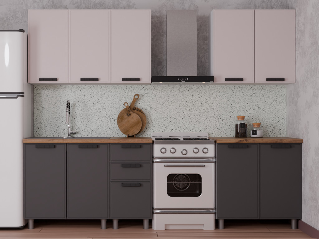 - Кухонный гарнитур Магнолия 2000 мм Кашемир/Сталь