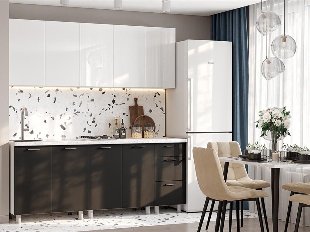 Кухонный гарнитур Модерн New 2000 МДФ без столешниц Белый глянец/Графит
