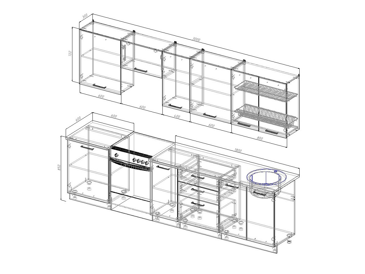 - Столешница: ЛДСП 26мм со скругленным краем (в пластике)