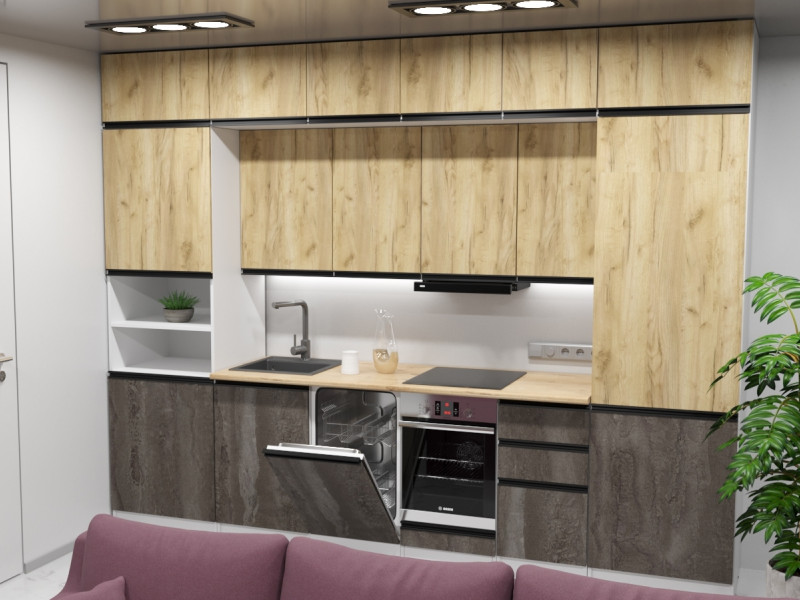 Мойка, смеситель, стеновая панель и посудосушитель в комплект гарнитура не входят.