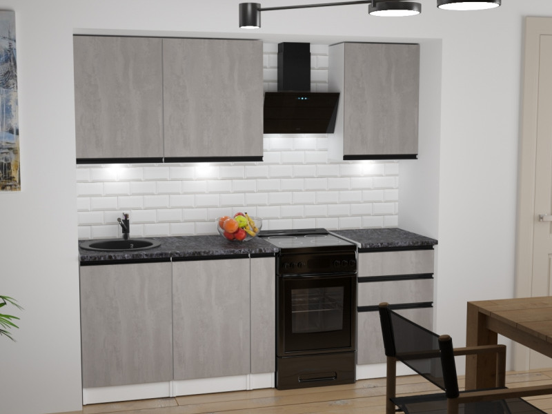 Мойка, смеситель, стеновая панель и посудосушитель в комплект гарнитура не входят.