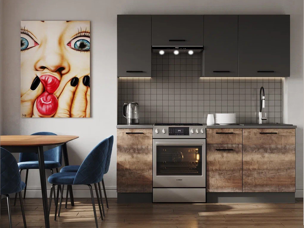 Кухонный гарнитур Астра МДФ 1600 графит софт/дуб галиано