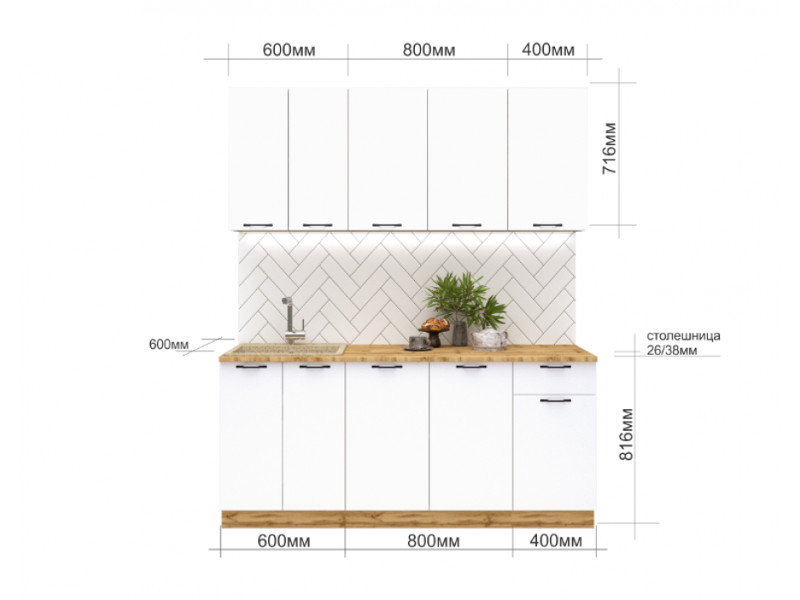 - Кухонный гарнитур Валерия 1800 мм МДФ Вотан/Белый