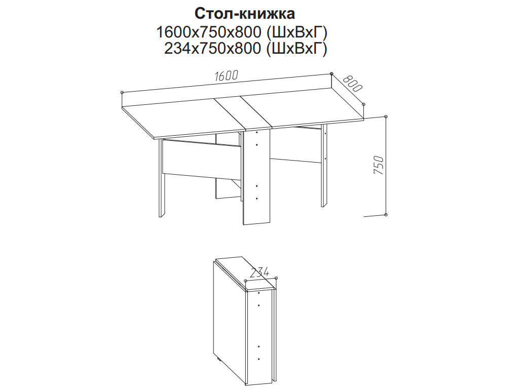 Габариты (ШхВхГ): 1600х750х800 мм
