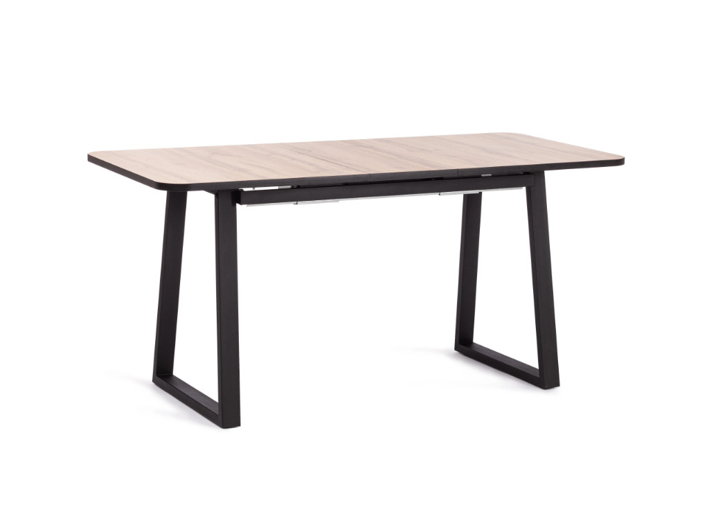 Необычная форма ножек придаст любому помещению особую индивидуальность и привлекательность. Стол подойдёт гостиной, кухни или столовой. Столешница цвета дуб вотан и вставка выполнены из ЛДСП толщиной 22 мм на лицевую поверхность которых нанесен защитный слой HPL толщиной 1 мм. HPL имеет защитное покрытие оверлей высокой степени истирания, которое повышает устойчивость поверхностей к повреждениям. Для увеличения размера стола используется автоматический механизм подъема вставки стола. Прочные черные металлические ножки окрашены порошковой краской. Ножки стола регулируются по высоте для устранения неровности пола. За столом могут разместиться от 2 до 6 человек.