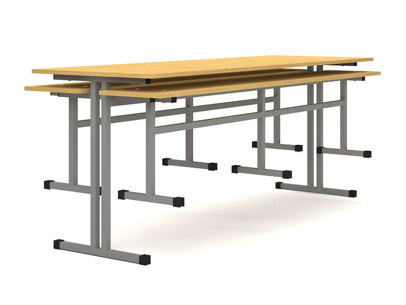Стол обеденный 6-ти местный, оборудованный двумя скамьями. Каркас изготовлен из металлической трубы квадратного сечения 25х25 мм, с полимерно-порошковой окраской в светло-серый цвет.
