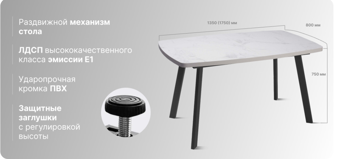 - Стол раздвижной Прованс.1 пластик мрамор белый - комплект ног №12.1