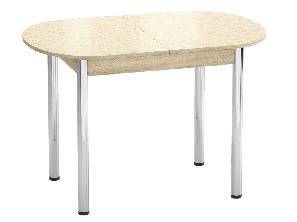 - Стол раздвижной Универсальный Пластик Хром Цветы бежевые